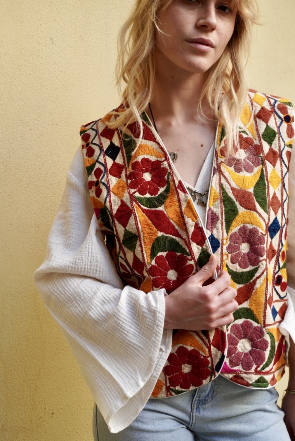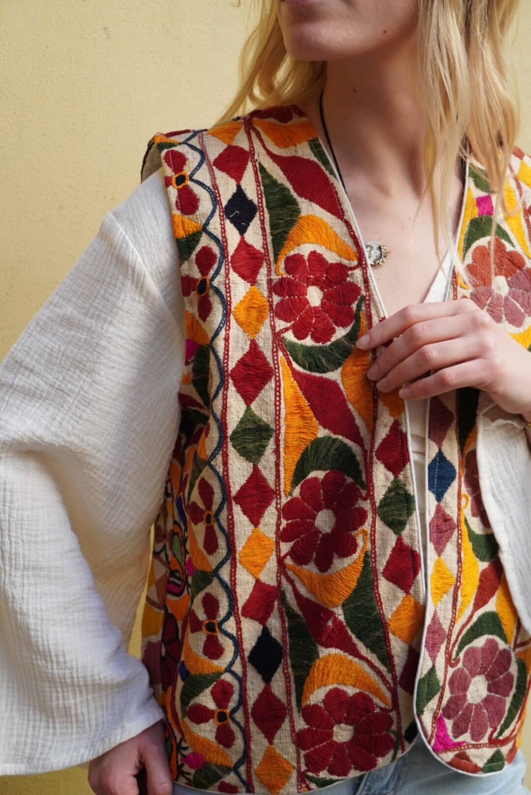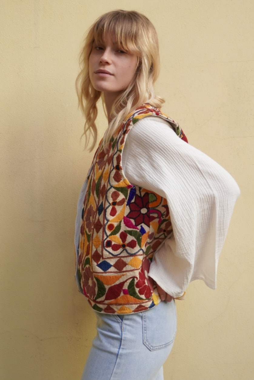 - Gilet interamente ricamato a mano con motivi geometrici e floreali